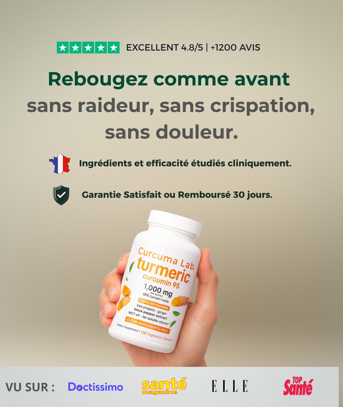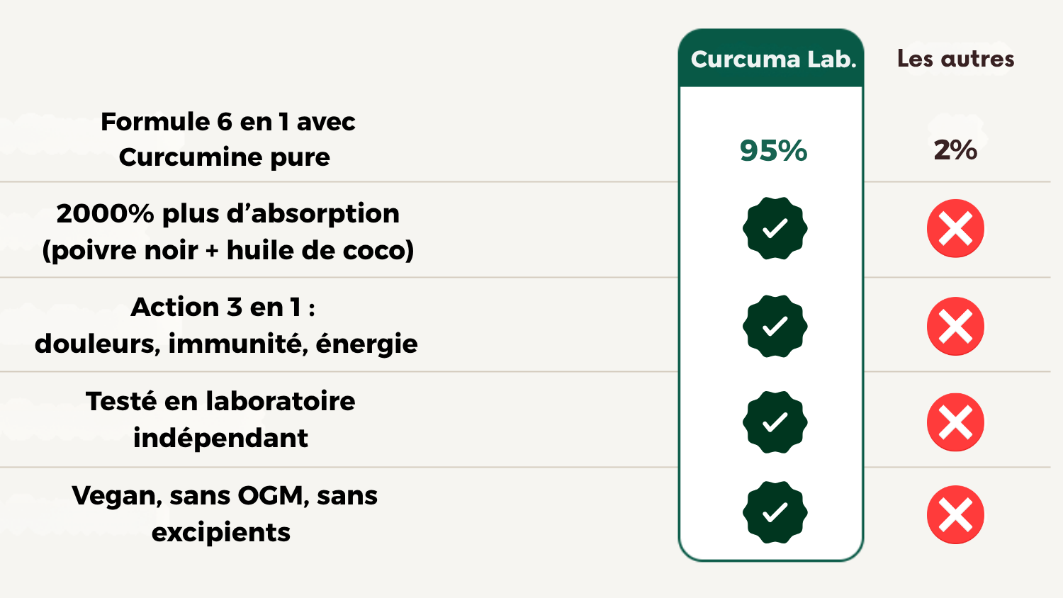 La différence, c’est que Curcuma Lab ne soulage pas seulement les articulations il agit sur tout ce qui influence votre bien-être global.